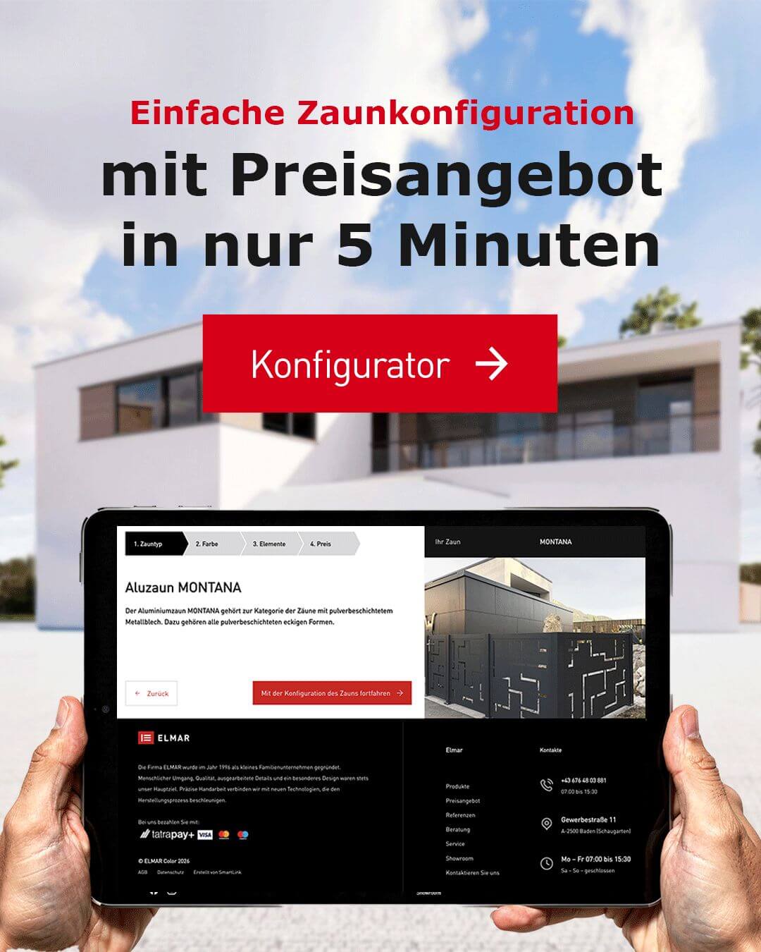 Qualitativ hochwertig behandelter und pulverbeschichteter Aluminiumzaun ist praktisch wartungsfrei. Wir empfehlen jedoch, ihn mindestens zweimal jährlich mit sauberem Wasser und einer kleinen Menge eines neutralen Reinigungsmittels mit pH-Wert 7 zu reinigen. Achten Sie besonders auf die Gartenbewässerung. Bei hartem Wasser empfehlen wir dessen Aufbereitung (Enthärtung) oder eine sorgfältige Einstellung der Düsen, damit ein Kontakt dieses Wassers mit dem Zaun vermieden wird. Mehr zur Wartung finden Sie hier.