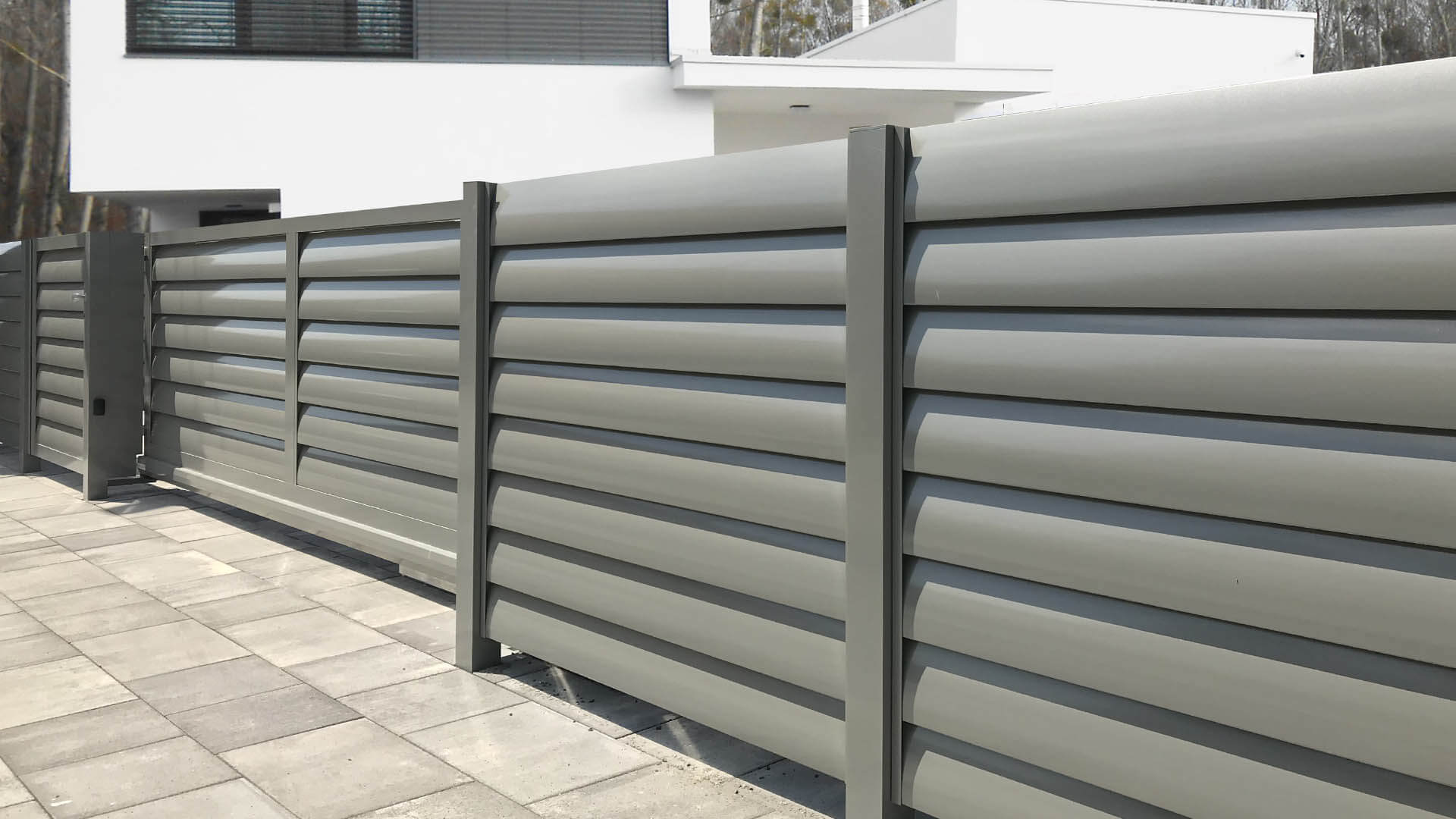ist eine moderne Einzäunung mit ausgeprägtem aerodynamischem Charakter. Ihr dominierendes Element sind abgerundete horizontale Lamellen in Linsenform (Auge), die ein weiches, fließendes und elegantes Erscheinungsbild erzeugen. Durch das abgerundete Profil wirkt der Zaun optisch leichter, gleichzeitig jedoch massiv und technisch präzise. Das Modell BILBAO ist mit zwei Lamellentypen – 100 mm und 200 mm – erhältlich, was es ermöglicht, das Endergebnis sowohl im Aussehen als auch im Maß der Privatsphäre nach individuellen Wünschen anzupassen. Die breitere Lamelle erzeugt einen markanteren und kompakteren Eindruck, die schmalere wirkt feiner und dynamischer.