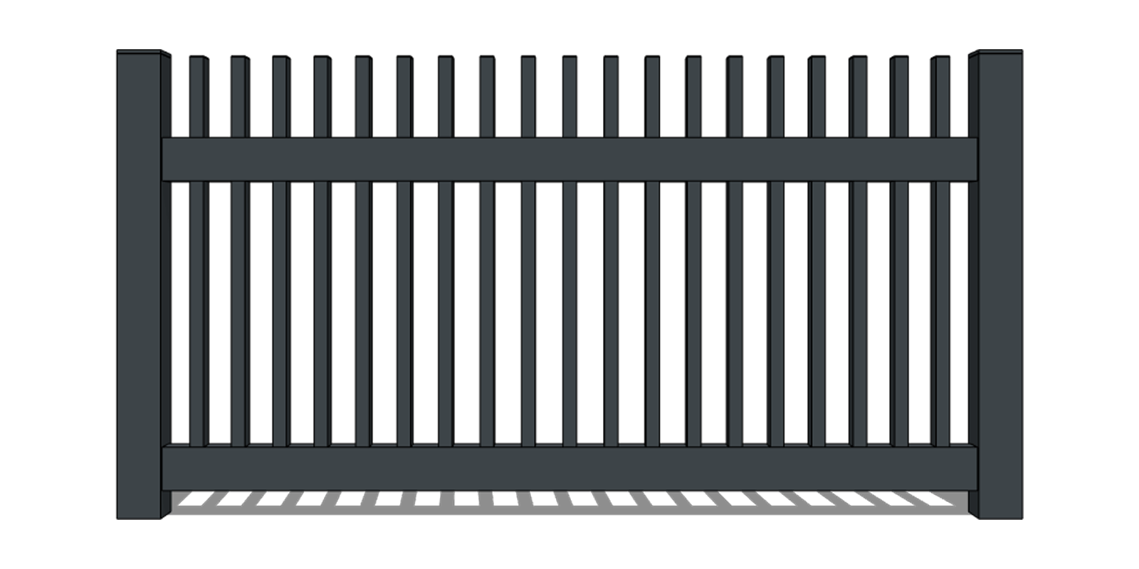 Charakteristisch sind schmale vertikale Profile, die in einem stabilen Rahmen eingesetzt sind und einen eleganten Rhythmus erzeugen sowie die Höhe der gesamten Konstruktion optisch betonen. Der Zaun wirkt leicht und luftig, gleichzeitig jedoch stabil und robust. Durch den regelmäßigen Abstand der Profile entsteht eine natürliche Abgrenzung des Grundstücks, ohne massiv oder geschlossen zu wirken. Die robuste Aluminiumkonstruktion gewährleistet eine hohe Witterungsbeständigkeit.