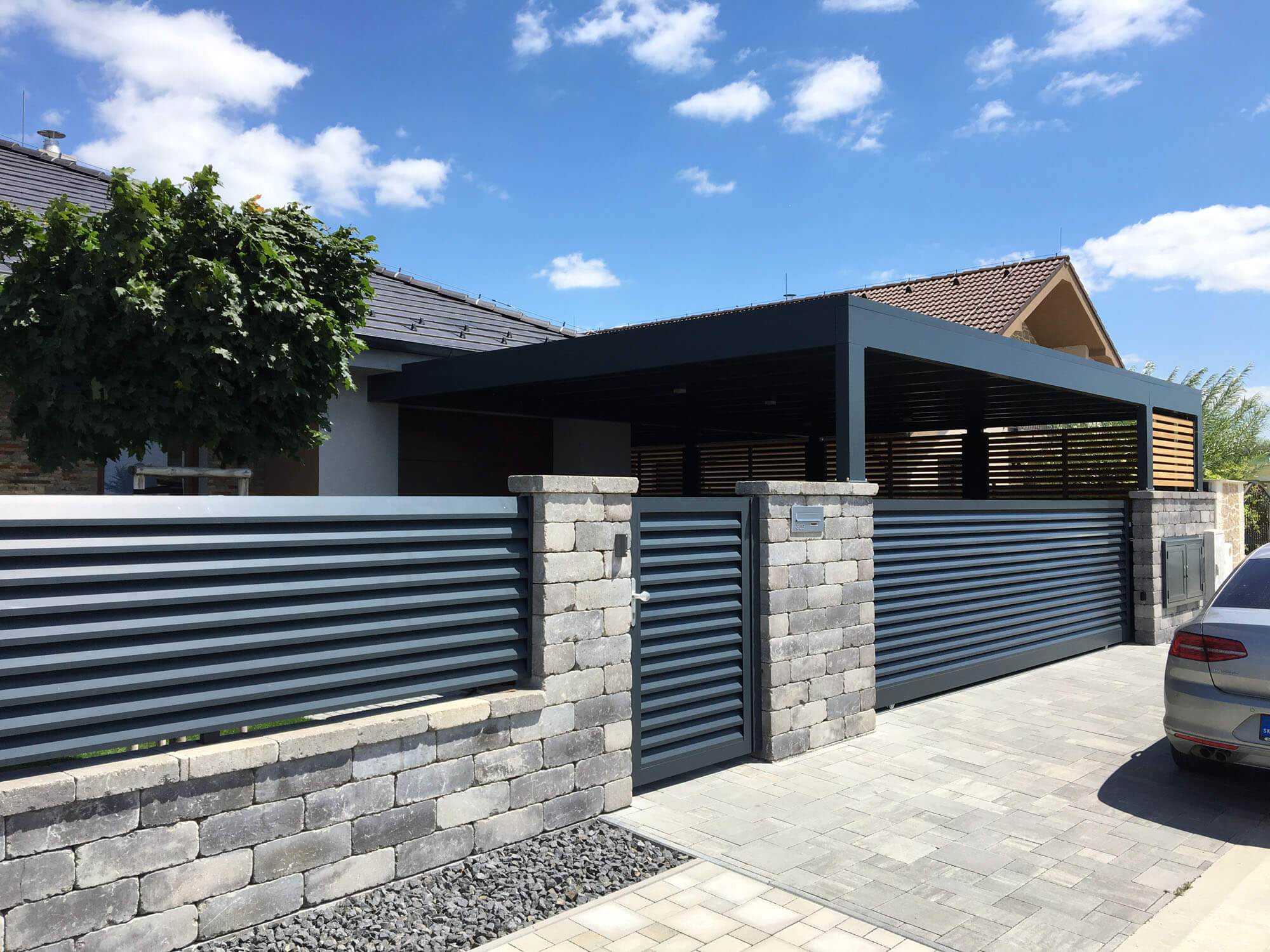 PORTO ist das meistverkaufte Modell in unserem Angebot, beliebt wegen seines universellen Designs und seiner Funktionalität. Dank der Lamellen bietet es eine höhere Durchlüftung im Vergleich zu geschlossenen Zäunen, wodurch der Winddruck auf Zaun und Tor deutlich reduziert wird. Somit stellt es den idealen Kompromiss für Kunden dar, die Privatsphäre wünschen, aber in windigen Gebieten wohnen. Der Zaun ist sowohl in horizontaler als auch in vertikaler Lamellenanordnung erhältlich. Bei vertikaler Anordnung ist im Gegensatz zum Modell BOSTON der tragende Rahmen sichtbar. Im Vergleich zum Lamellenzaun BILBAO verfügt PORTO über eine eckige Lamelle, die ihm einen technischeren und markanteren Charakter verleiht.