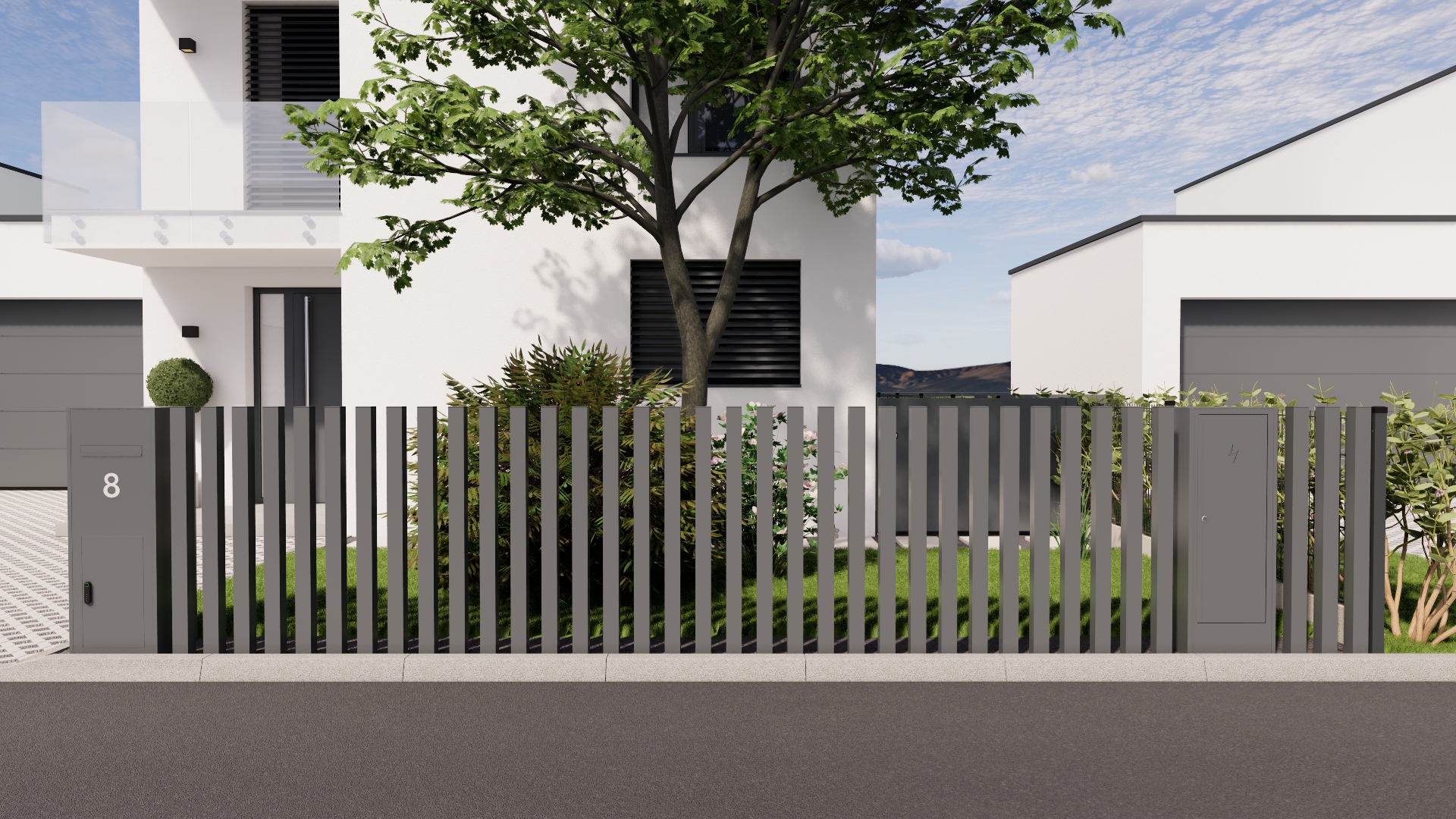 Es stellt eine moderne und zeitlose Lösung für Einfamilienhäuser sowie Wohnprojekte dar. Charakteristisch ist die vertikale Gliederung, die leicht und elegant wirkt und gleichzeitig ausreichend Privatsphäre bietet. Das minimalistische Design des Zauns fügt sich natürlich in die zeitgenössische Architektur ein und betont die klaren Linien des Objekts. SPLIT wurde mit Fokus auf präzise Verarbeitung, lange Lebensdauer und Variabilität entworfen, wodurch er sich an verschiedene Grundstückstypen und architektonische Stile anpassen lässt.