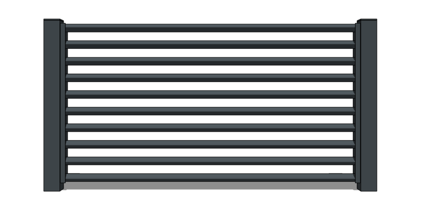 ist eine moderne Einzäunung, inspiriert von der Symbolik des Dreiecks – drei Seiten, Gleichgewicht und Stabilität. Ihr Charakter wird durch eine präzise angeordnete horizontale Füllung geprägt, die dynamisch und zugleich harmonisch sowie ausgewogen wirkt. Dominierendes Element sind horizontale Lamellen, die in einem stabilen Rahmen eingesetzt sind und klare Linien sowie einen modernen architektonischen Ausdruck schaffen. Dieser Zauntyp bietet die Möglichkeit, den Abstand der Profile individuell anzupassen. Das Modell TRIPOLIS ist die ideale Lösung für moderne Einfamilienhäuser, bei denen geometrische Klarheit im Vordergrund steht.