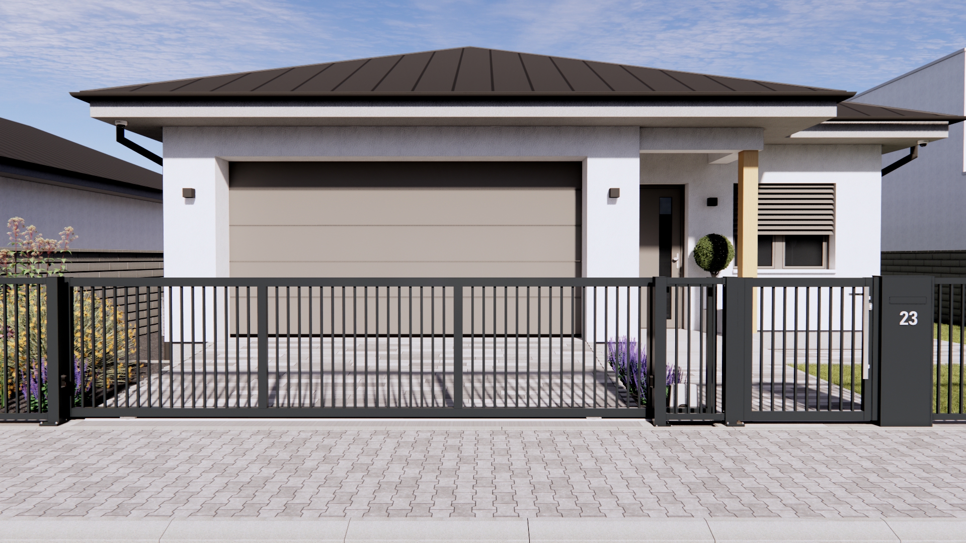 Guten Tag, ich schreibe etwas später nach der Montage, aber ich hatte das Bedürfnis, mich – auch im Namen aller Beteiligten an meiner Bestellung – auf diesem Wege für die qualitativ hochwertige Arbeit zu bedanken. Ich möchte meinen Dank aussprechen und ein Lob für den professionellen Ansatz und die Kommunikation von der Aufmaßnahme bis hin zur Umsetzung meiner Bestellung – Schiebetor, Gartentür und Zaunfüllungen – aussprechen. Ich schätze die Ausführungsqualität sehr hoch ein und ebenso die professionelle Montage durch das Montageteam, das bei mir gearbeitet hat. Bei der Montage, bei der kleine technische Anpassungen erforderlich waren, wurden die Arbeiten sehr präzise, fachgerecht und mit ästhetischem Gespür durchgeführt … Daumen hoch. Bereits während der Montage gab es mehrere Nachfragen zum Lieferanten des Tores und der Zaunfüllungen, und ich stelle fest, dass Passanten den Zaun fotografieren, wenn sie vorbeigehen – ein Beweis dafür, dass die Arbeit aus hochwertigen Materialien ausgeführt und präzise installiert wurde. Ich wünsche Ihnen viele gute Geschäfte und ebenso zufriedene Kunden. Mit freundlichen Grüßen und besten Wünschen für einen schönen Tag. Andrea Lorenz